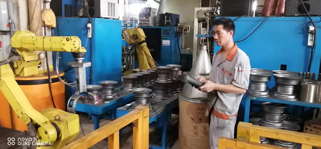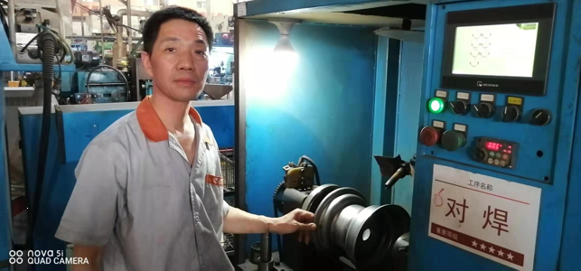 他在默默的堅守自己的崗位,用實際行動完美解釋了“沒有學不會的技術,只有懶惰的人”,他無時不刻在想著學習,學習新的知識努力掌握新的技術,他由簡單的打磨工、滾圈、整型、壓芯子、鉆孔、攻絲、壓槽、試漏,到后來的手動氧弧焊、手動焊保護罩、對焊、焊芯子,再到現(xiàn)在最新的自動機械手臂操作,他通過自己的不懈努力、勤奮好學掌握了13項技術,完美的詮釋了風馳的這種拼搏奮進、學無止境的匠人精神。