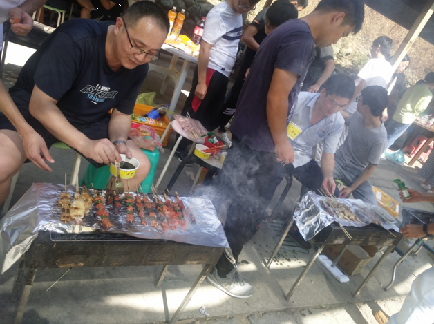 上午達(dá)到目的地后,各小組有條不紊的開始了第一項活動-自主烹飪。大家烹飪的內(nèi)容也是豐富多彩,有燒烤、火鍋、包餃子、還有本地特色豬肉飯。平常不怎么露手的各位可都深藏不露,在公司里研發(fā)中心團(tuán)隊可是有著燒烤達(dá)人美稱的。今年又新晉一組美食達(dá)人團(tuán)隊總裁、人力組,因為他們成功打破了往年幾次燒豬肉飯失敗案例,這個逆襲非常漂亮!毫不低調(diào)的說風(fēng)馳這個大家庭里有著廚師級別的成員也是高手云集的。經(jīng)過一番忙碌之后,大家心滿意足的享受完一起親手烹飪的美食。
