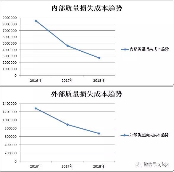 在2017年建立公司質(zhì)量成本統(tǒng)計(jì)核算系統(tǒng)以來(lái),質(zhì)量損失事件及不合格產(chǎn)品造成的質(zhì)量損失成本數(shù)據(jù)進(jìn)行了有效的收集、統(tǒng)計(jì)、分析、匯總,2018年,質(zhì)量損失成本管理的持續(xù)化,及對(duì)質(zhì)量損失成本分析數(shù)據(jù)的有效應(yīng)用,最終得到了豐厚的回報(bào),根據(jù)質(zhì)量損失成本的排列圖分析,而確定的涂裝生銹、涂裝油點(diǎn)的改進(jìn);針對(duì)鈑金工藝的滾圈、擴(kuò)口開(kāi)裂的報(bào)廢損失的改進(jìn),最終使本公司的內(nèi)部質(zhì)量損失成本,由2016年的850萬(wàn)下降到2018年的273萬(wàn);外部質(zhì)量損失成本由2016年的128萬(wàn),下降到2018年的67萬(wàn)。